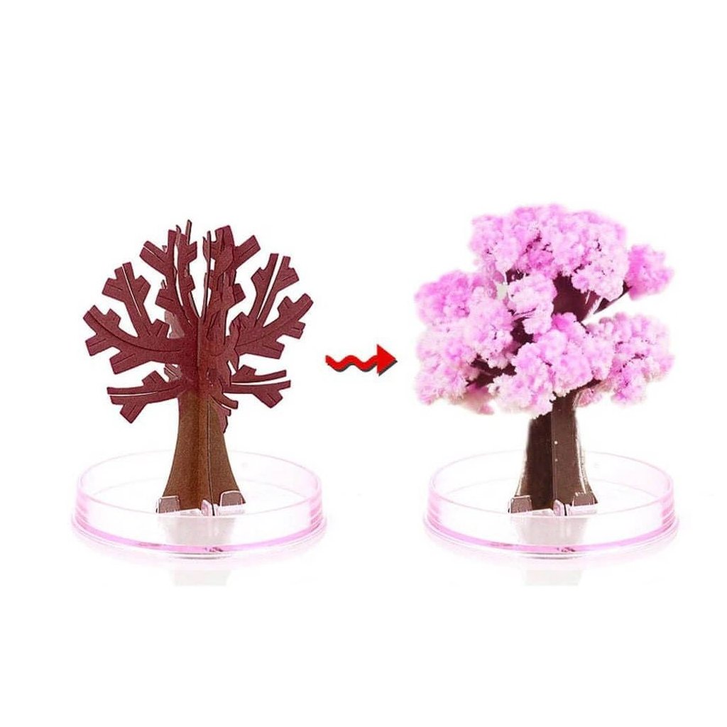 Pomișorul are o înălțime de 9 cm, este fabricat din două părți de carton îmbinate între ele. Întreaga "magie" se află în lichidul "magic", care se aplică pe crenguțele din hărtie, și în câteva ore o să aveți un cireș frumos înflorit !