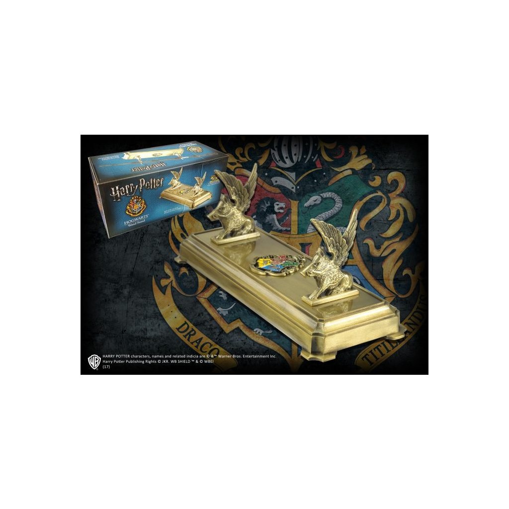 Suport pentru baghetă în design auriu cu blazon, este un cadou perfect pentru toți fanii lui Harry Potter.