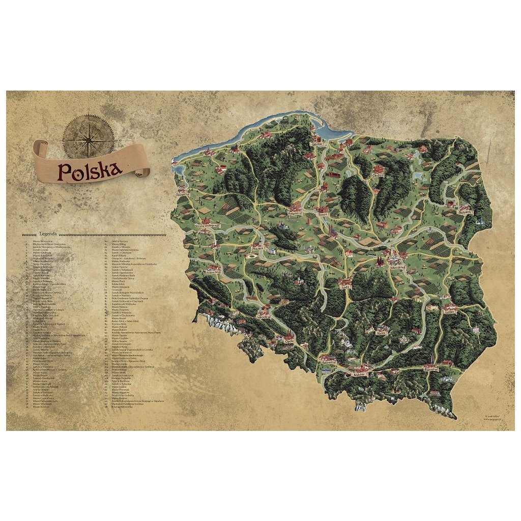 Fiecare monument și punct de pe hartă este o miniatură realistă a originalului său. Fiecare dintre ele este pictat cu meticulozitate pentru a surprinde cât mai bine și mai fidel esența sa. Harta a fost pregătită pentru a deschide calea turismului, pentru a recunoaște locuri individuale, pentru a marca realizările călătorilor și, în cele din urmă, ca o amintire reală a Poloniei.