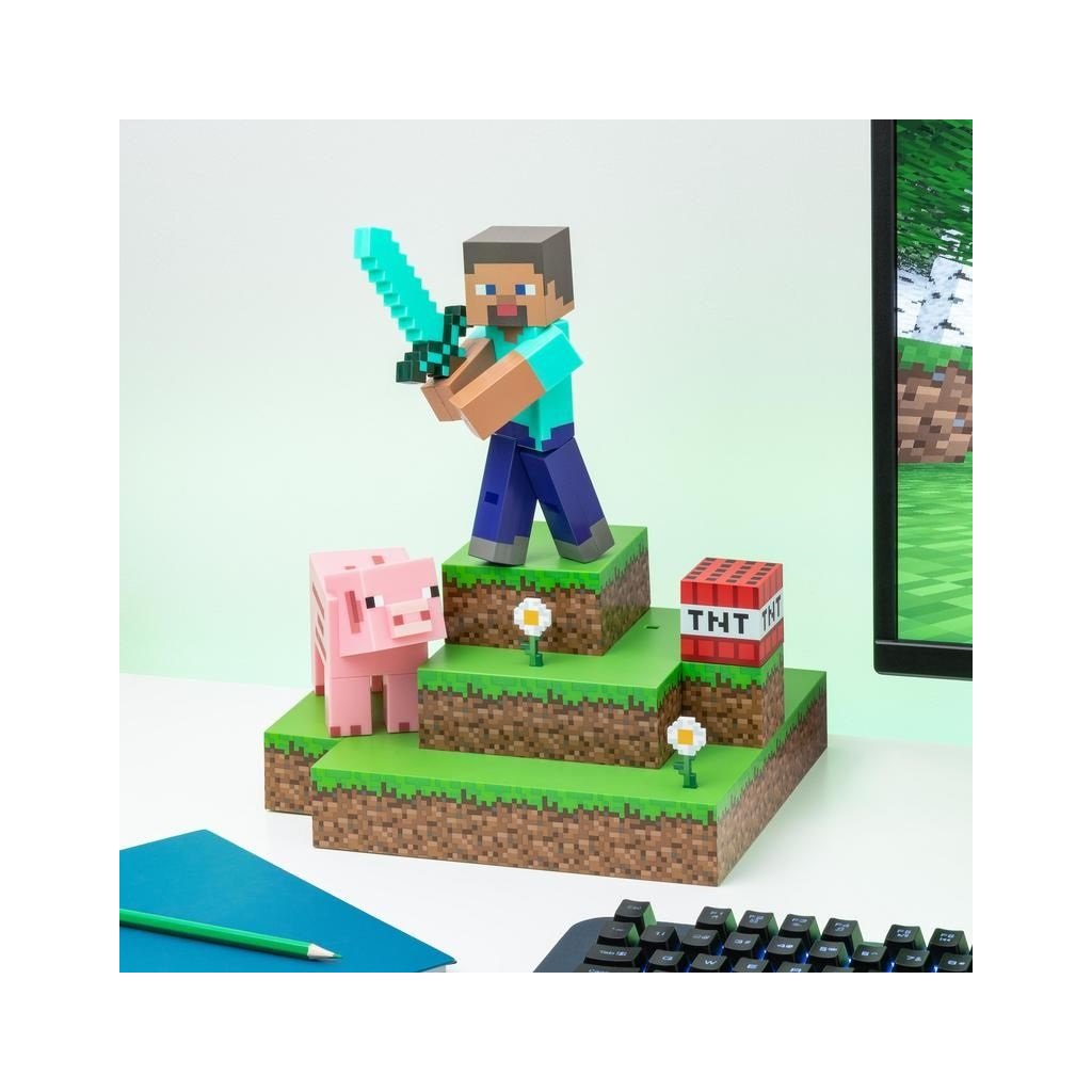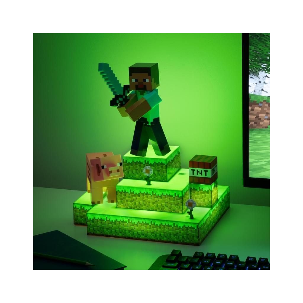 Lampa în stilul lui Steve din Minecraft este accesoriul perfect pentru a-ți decora camera geek și a o ilumina într-un mod original.